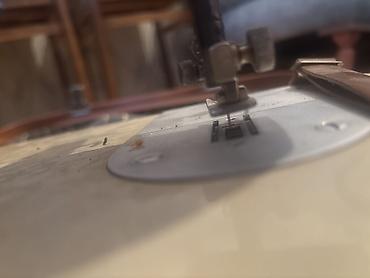 Mexaniki tikiş maşını çox az işlənib,tam ideal vəziyyətdədir.Heç bir çürüyü,zədəsi yoxdur. Gövdəsi masaya quraşdırılıb.Ayaqla idarə olunur.