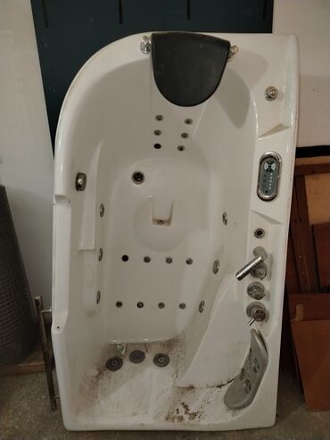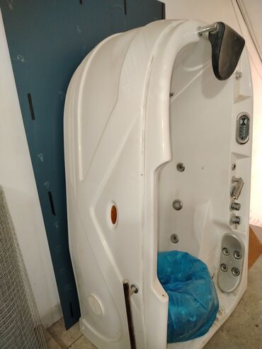 Hidromassajlı duş-kabin - Künc tipli oval forma, sürüşkən şüşə qapılar və metal tutacaqlar - Yuxarıdan yağış duşu (tavan sprey başlığı) + əl duşu - Korpusa inteqrə olunmuş vertikal hidromassaj jet...