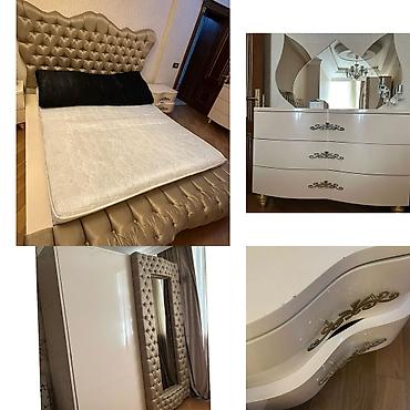 İtaliya istehsalı klassik yataq dəsti. Tərkibi: - Geniş 4 qapılı qarderob (aşağıda əlavə çekmecələr) - Yataq çərçivəsi (iki nəfərlik ölçü), başlıq və ayaqlıqda oyma dekor - Tualet masası böyük ova...