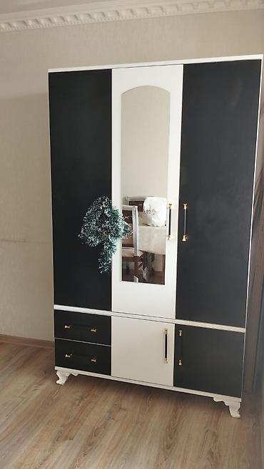 DOLAB – 4 qapılı, fabrik istehsalı – Ölçü: 1.80 x hündürlük 2/47 (şəkildə göstərilən ölçülər) – Rəng: krem/bez ton – Dizayn: klassik üslubda, dekorativ ayaqlar, qızılı rəngdə tutacaqlar – Daxili q...