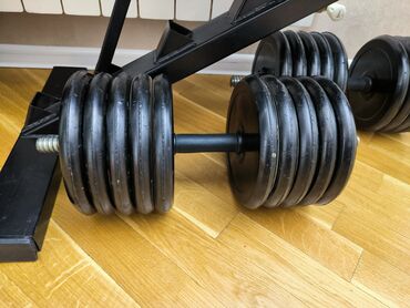 Hər biri 22,5 kq olan iki ədəd qantel. Daşlar Rezindir, içi kalçukla, betonla və s.. doldurulan qantellərdən deyil yəni. Ümumi 45 kq-dan artıq gəlir. 20 ədəd daş hər biri 2 kq. Çox rahat tutuşu var, əli ağrıtmır. Qrifi uzundur hər tərəfə rahat 7 ədəd çəki daşı (ümumi 14 daş) salmaq olur, (bu uzunluqda qrifin qiyməti ilə də maraqlana bilərsiniz minimum 20 manat olur bir ədədi) beləcə ən yüngül çəkidən ən ağır çəkiyə qədər ağırlığı tənzimləyə bilərsiniz. Boltları çox yaxşı açılıb bağlanır, bu da drop şeylər edərsiniz sürətli şəkildə çəkini azalda bilərsiniz.