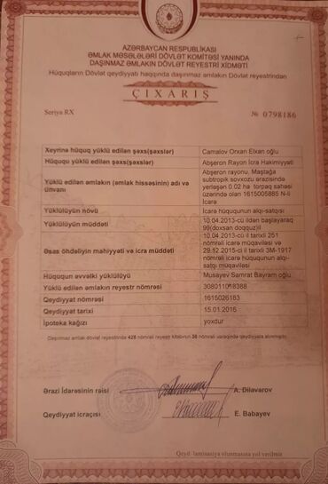 6 sot, Tikinti, Mülkiyyətçi, Kupça (Çıxarış)