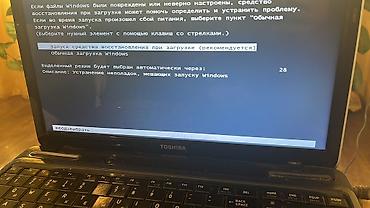 - Sistem: Windows yükləmə menyusu açılır, bərpa rejimi və “adi yükləmə” seçimləri görünür (ekranda rus dilində).