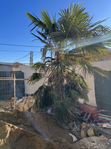 Satılır: iri dekorativ xurma (palma) ağacı Palma.30ili var.eni 5metre. - Növ: dekorativ palma/xurma - Hündürlük: təxminən 5–6 m - Tac diametri: 6–8 m-ə qədər geniş, sıx yarpaqlı - Gövdə: qalın, seg...