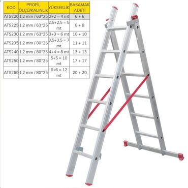 Təkərlər üzərində hərəkət edən bu yüngül alüminium tikinti nərdivanı işlərin rahat icrası üçün hazırlanmışdır. Dörd təkər sayəsində asanlıqla hərəkət etdirilə bilər. Dəstək üçün qırmızı rəngli çarp...