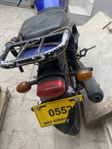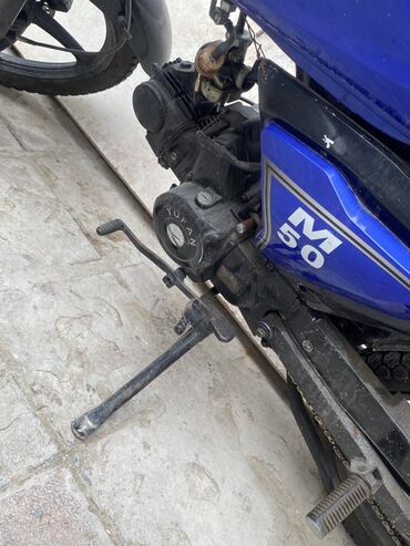 Tufan M50 motosiklet - Rəng: mavi - Kuzov: şəhər/kruizer tipli, ikinəyə oturacaq - Mühərrik: 4T benzin, hava ilə soyudulan, karbüratorlu (yan tərəfdə “M50” qeyd olunub) - Ötürmə: ayaqla idarə olun...