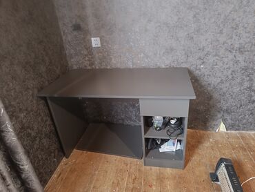 Masa/kompüter stolu – tünd boz rəngdə, minimalist dizayn. - Geniş iş