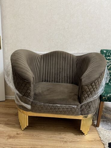 Tək nəfərlik yumşaq kreslo 2 eded 100azn - Rəng: tünd boz - Material: məxmərə bənzər yumşaq parça, dekorativ düymə detallar - Dizayn: geniş oturacaq, yüksək bel hissəsi, yumşaq qol dayaqları - Kark...