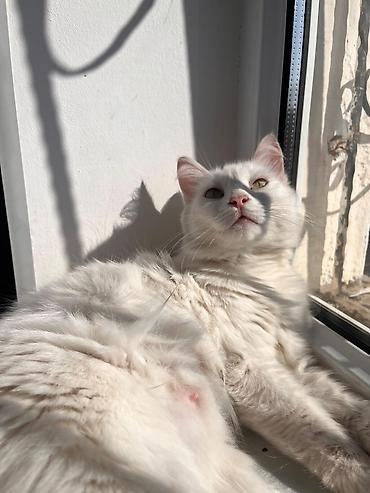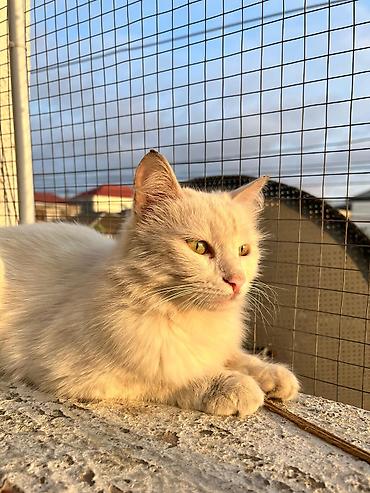 Şəkillərdə göstərilən pişik mehriban, işıq düşən yerdə dincəlməyi və insanla diqqət mərkəzində olmağı xoşlayır. Sahibləndirilmək üçün hazırdır.