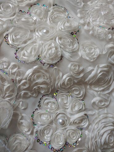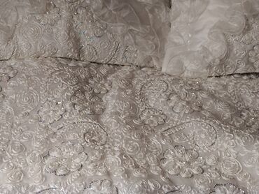 Ünvandan götürməDüm ag rəngde(şəkilde rəngi net düşməyib amma ag-appagdı). Ətəyləri kurujuva ilə bəzədilmiş, üstləri qızıl gül butonlarla əl naxışları vurulmuş və ag mirvarıi və biserlər tikilmş 2.70x2.70ə pakrıval və eyni naxışlı 2 balış üzləri. Az işlənib heç bir defekti və söküyü yox.