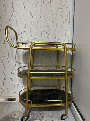 - Dizayn: Qızılı rəngli metal karkas, oval formalı 3 mərtəbə; qara mərmər effekti olan lövhələr.
