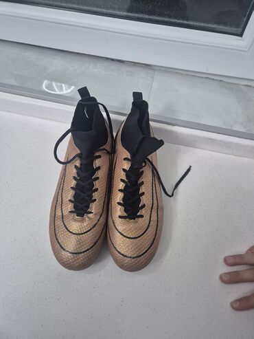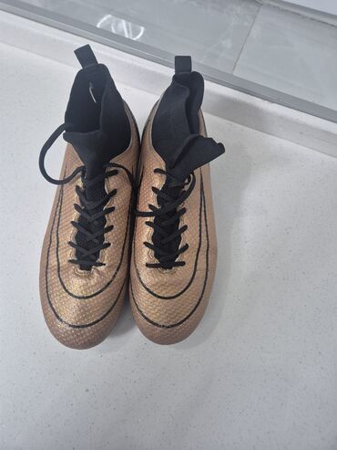 Başlıq: Butsa, 37 razmer, 1 dəfə geyinilib, çox bərk və keyfiyyətlidir Təsvir: - Futbol üçün butsa - Ölçü: 37 - Rəng: qara, qızılı detallar - Sintetik üst material, sıx toxunuşlu səth - İp bağlama...Giriş•Qeydiyyat