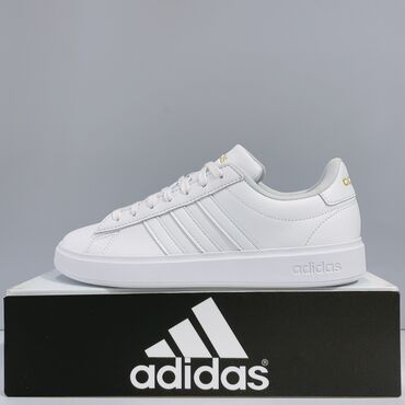 Ağ rəngdə, "Adidas" brendinə məxsus krossovkalar. Bu idman ayaqqabıları gündəlik istifadə üçün uyğundur və rahatlıq təmin edir. Yan tərəfində brendin üç zolaqlı loqosu, dilində və dabanında isə "Adidas" yazısı mövcuddur. Minimalist dizaynı sayəsində müxtəlif geyim üslubları ilə asanlıqla kombinə oluna bilər. Davamlı materiallardan hazırlanmışdır və uzunmüddətli istifadə üçün idealdır.