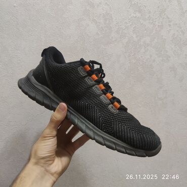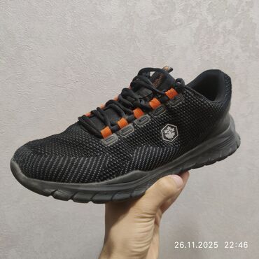 Krossovka (casual) – nəfəsalan mesh üstlük, qara rəngdə, narıncı krujqalarla bağlanma detalları. Yüngül və elastik EVA tipli altlıq, amortizasiya və rahat hərəkət üçün qalın kənar protektorlu dizayn. Yan hissədə yarpaq/çəhrayıxa bənzər loqolu heksaqon nişan. Dəriyə uyğun yumşaq daxili astar, möhkəm burun və daban hissəsi, çəkib-geymə üçün arxa ilgək. Qaçış, gəzinti və gündəlik istifadə üçün uyğundur.