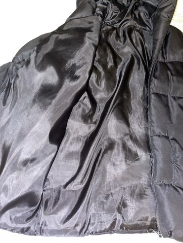 Qara rəngdə qışlıq şişmə gödəkçə - Material: ön hissə və kapüşon qıvrım tüklü/şerpa tipli tekstura, qol və arxa hissə şişmə, suya davamlı parça. - Kapüşon: sabit, iri və isti, tüklü haşiyə ilə. - ...