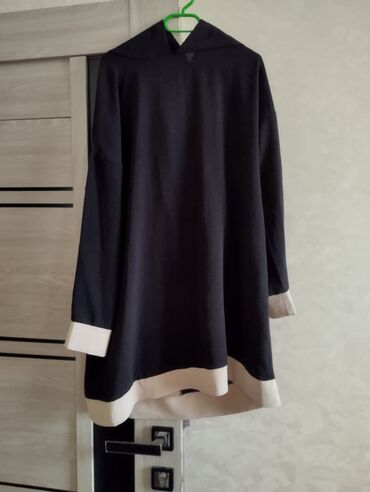 - Üst: Uzunqol, boş kəsim, kapüşonlu; ətək hissəsində və manjetlərdə kontrast krem haşiyə