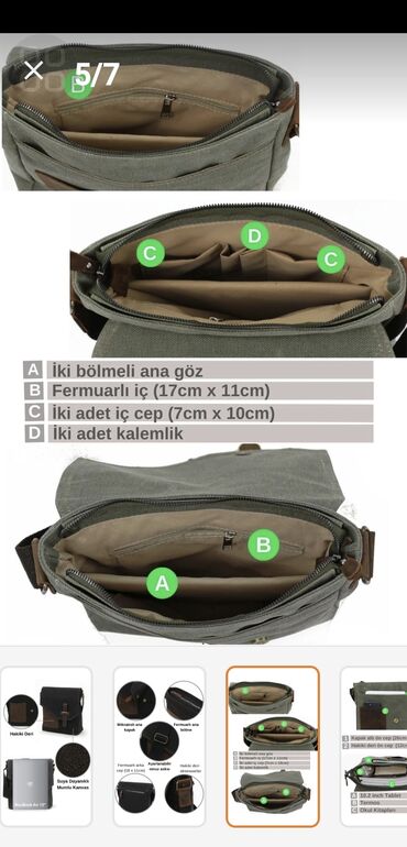YeniBu çanta 10.2 düymlük planşet, termos və dərs kitablarını daşımaq üçün nəzərdə tutulmuşdur. Çanta iki əsas bölməyə, fermuarlı iç ciblərə və qələmlik üçün iki bölməyə malikdir. Ön tərəfində qapaq altı cib (26 sm x 25 sm) və əlavə olaraq həqiqi dəri ön cib (12 sm x 14 sm) var. Çantanın arxasında gizli fermuarlı cib də mövcuddur. Çiyin qayışı tənzimlənə bilir.