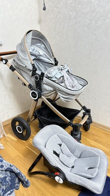- Komplekt: portbebe/lyulka başlığı, şassi, alt səbət, ayaqörtüyü/konvert, əlavə olaraq eyni rəngdə avtokreslo/lyulka tipli beşik (daşıma qulpulu, 3 nöqtəli kəmər)