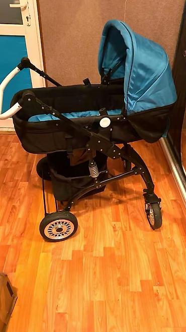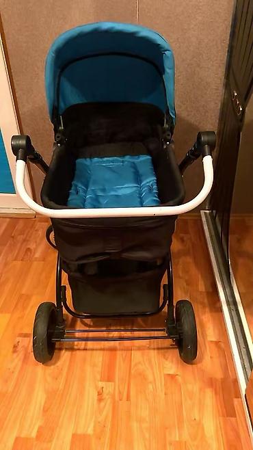 Uşaq arabası – mavi rəng, klassik beşik tipli. Xüsusiyyətlər: - Geniş və dərin beşik hissə, yumşaq içlik və örtük - Qapadılan günlük/kapot (uzadılan hissə ilə) - Çevrilə bilən tutacaq: valideynə v...