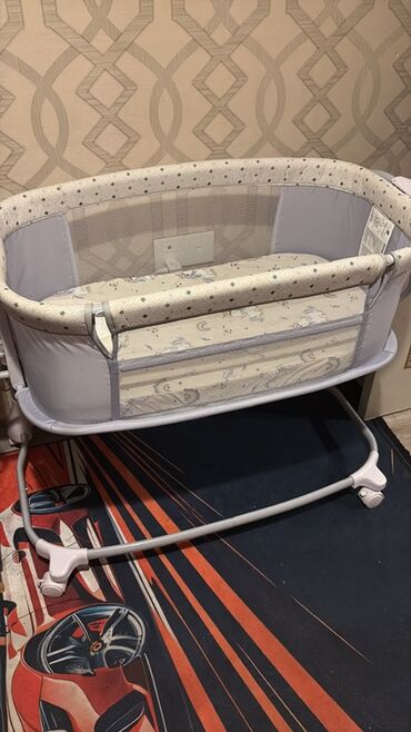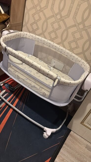 Beşik/yan beşik – avtomatik yelləncəkli(yellençek aparati xarabdir,duzeltdirmek lazimdir) - Körpələr üçün komfortlu yan beşik: yataqla yanaşı istifadə oluna bilir, yan tərəfləri tənzif/mesh pəncərə...