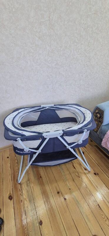 Uşaq beşiyi – ağ rəngdə, klassik dizayn. 350 azn alinib Hal hazirda 50 azn satılır UNVAN:BAKI ( INSAATÇILAR METROSU) Xüsusiyyətlər: - Sürüşən yan barmaqlıq: yuxarı-aşağı hərəkət edən relsli ön tərə...