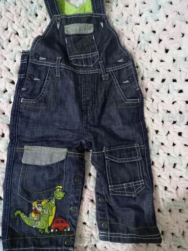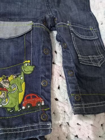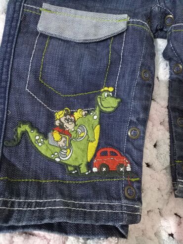 - Bəzək: sol balaqda şən naxış – dinozavr, uşaq və qırmızı maşın təsviri; kontrast yaşıl tikişlər