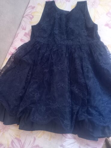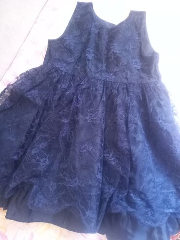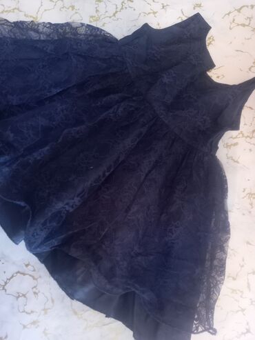 Qız uşaqları üçün zərif tünd lacivərd don 1 dəfə geyinilib - Model: qolsuz deyil, qısa qollu, dairəvi yaxa - Rəng: tünd lacivərd, ətək hissəsində ikiqat ağ atlas lent bəzəyi - Bədiilik: sinədə dek...