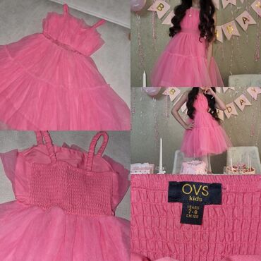 Uşaq üçün bayramlıq paltar – çəhrayı rəngdə, güllü dizayn - Model: qolsuz, tül ətəkli - Rəng: parlaq çəhrayı - Üst hissə: saten materialdan 3D gül aplikasiyaları ilə Cemi 1 defe geyilib