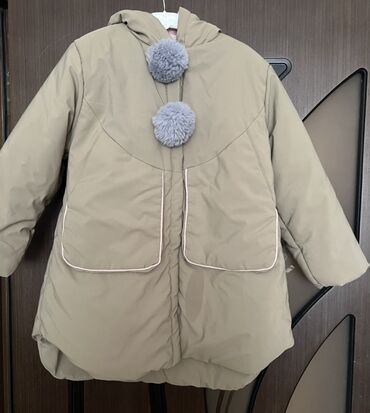 - Qış gödəkçəsi: Açıq bej rəngdə, kapüşonlu, öndə iki böyük kvadrat cib. Mərkəzdə bəzək üçün iki ədəd boz ponpon. Yüngül şişmə forması soyuğa qarşı izolyasiya təmin edir. Gizli düymə/fermuar xətti ponponların altında yerləşir.