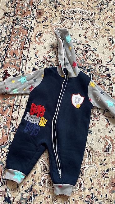 - Kombinezon: tünd göy gövdə, boz ulduz naxışlı qollar və kapüşon. Ön tərəfdən fermuarlı; “Boys will be boys” yazılı aplikasiyalar, sinədə emblemlə bəzədilib. İçliyi qalın, soyuq havalar üçün uyğundur.
