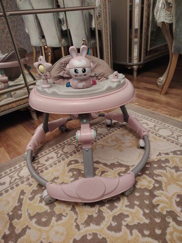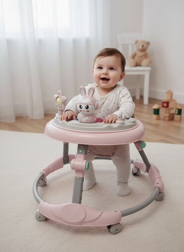 Uşaq gəzdiricisi (walker) – pastel çəhrayı və boz rəngdə.