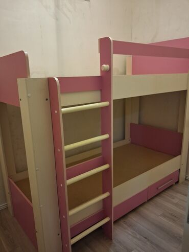Quraşdırmaya hazır karkas, standart tək nəfərlik matras ölçülərinə uyğun (matraslar daxil deyil). Qız otaqları üçün rəng uyğunluğu ilə funksional və estetik seçim.