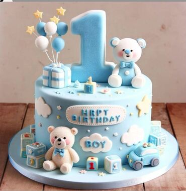- Bəzəklər: şəkər mastik fiqurlar, qızılı/gümüşü ulduzlar, rəngli balon və say rəqəmləri, yazılar (ad və yaş), lentlər, buludlar, incə dekor muncuqları.