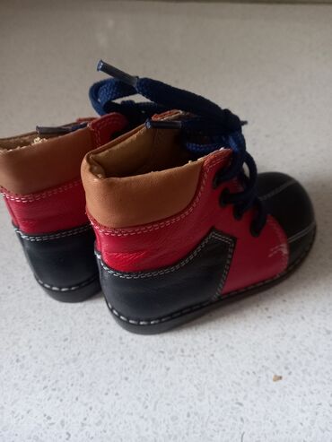 Uşaq ayaqqabıları – 2 cüt 1) Qırmızı-göy yumşaq botinka - Daxili hissə: leopard naxışlı, yumşaq xəz astar - Üst hissə: qırmızı parça, burnu göy - Altlıq: göy rəngli elastik rezin - Bağlanma: ön hi...