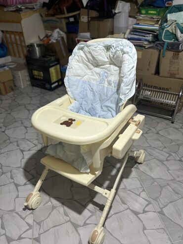 Uşaq yemək stulu/sallanan kreslo - Rəng: bej-krem tonları - Funksiya: həm yüksək yemək stulu, həm də sallanan kreslo kimi istifadə oluna bilir - Təkərli baza: asan hərəkət etdirmə üçün arxa hissəd...