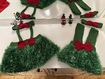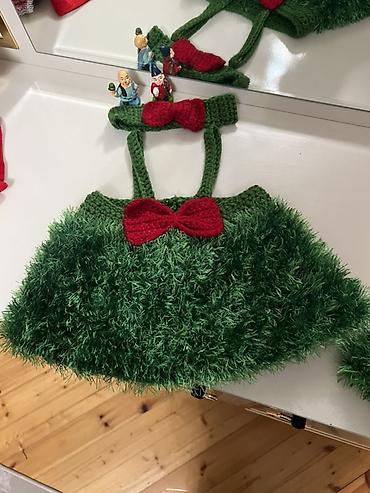 - 2 ədəd yaşıl toxunma ətək/sundress (tüklü effektli), hər birində qırmızı bant