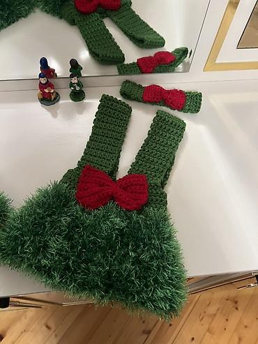 Uşaq üçün əl işi geyim dəsti - Rəng: Yaşıl və qırmızı. - Material: Əl