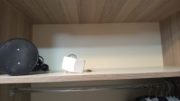 - Sürgülü qapı arxasında asılqan üçün metal travers və yuxarıda iri rəf.