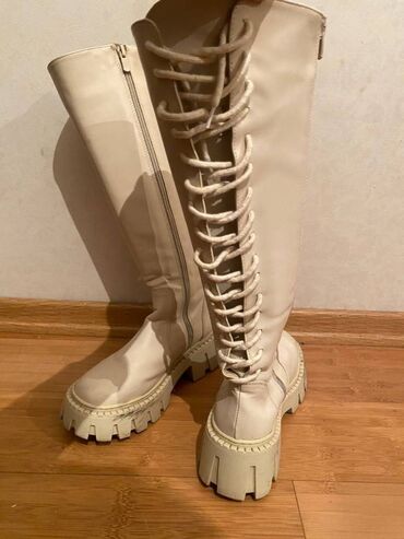 Qalın platformalı qadın botları. Geyilmeyib. 65 manata alinib. 45 e. Satiram. Ayaqima boyuk olduqucun - Rəng: bej/şaquli tonlar - Üst material: süet toxumalı (nubuk effekti) - Bağlanma: ön hissədə...