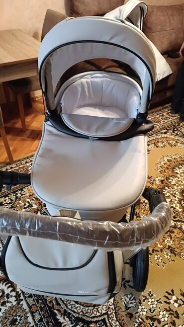 – Komplekt: şassı/çarxlar, beşik tipli carrycot, oturacaq bloku (gəzinti üçün), auto‑kreslo tipli portbebe, ayaqörtüyü, böyük alış‑veriş səbəti, ön barmaqlıq, çanta.