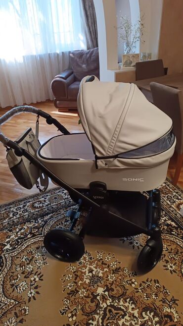 VERDI SONIC 3‑lü kalyaska dəsti – Komplekt: şassı/çarxlar, beşik tipli carrycot, oturacaq bloku (gəzinti üçün), auto‑kreslo tipli portbebe, ayaqörtüyü, böyük alış‑veriş səbəti, ön barmaqlıq, çanta...