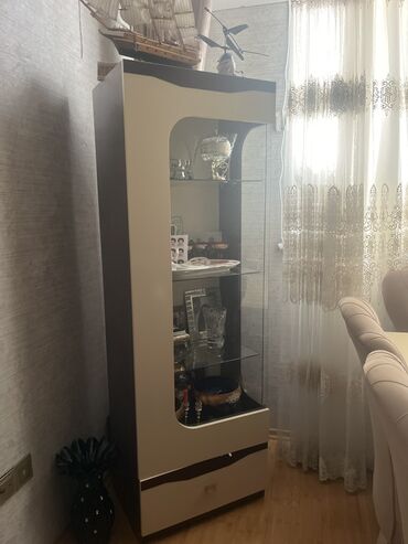 - Material: MDF/LDSP korpus, ön hissədə şüşə vitrin