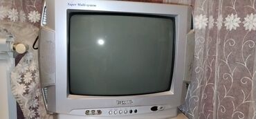 - Ekran: CRT, ön paneldə idarə düymələri (Power, Menu, Ch+, Ch-, Vol+, Vol-)