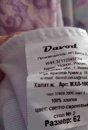 Qadın ücün xalat birkası üstündə 100% pambiq material, Rusiya istehsalı, ünvan Xırdalan AAAF parka yaxın