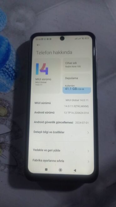 - Yaddaş: 128 GB daxili yaddaşdan 41.1 GB istifadə olunub (şəkildə göstərilib).