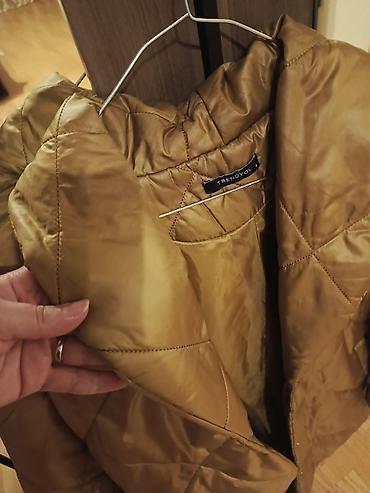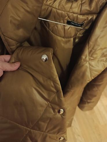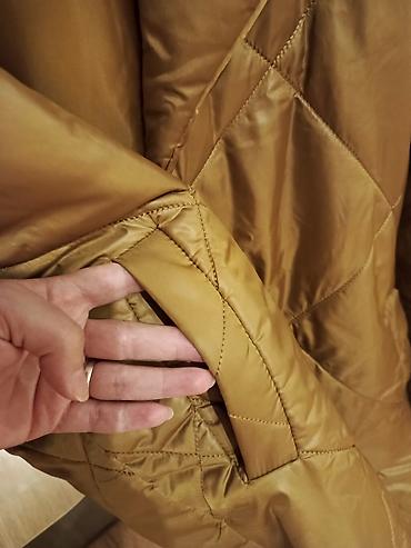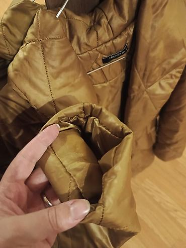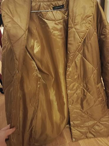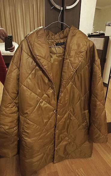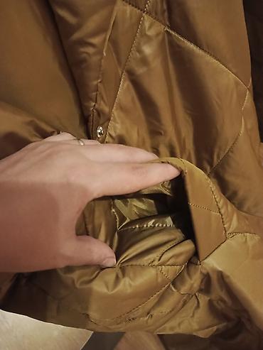 Gödəkçə qəhvəyi qızılı tonlarda müasir stilli. Çox az geyinilib. Ölçüsü üzərində qeyd olunub şəkildə diqqətlə baxın. M yazılıb XL ölçüyədə rahat olar. İstəyən yazar şəxsidə santimetrə ilə ölçülərini də göndərərəm dəqiq bilmək üçün.