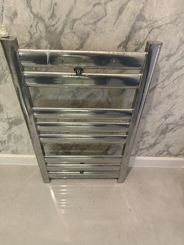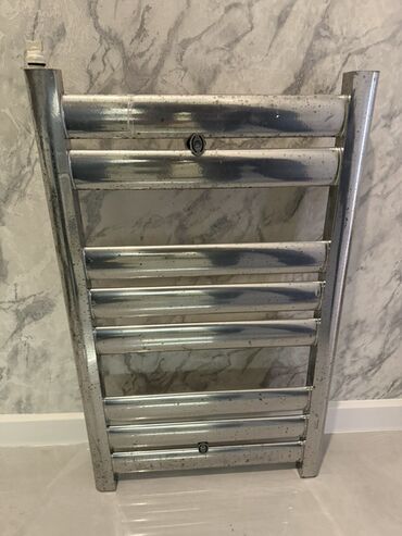 Paslanmayan poladdan divara quraşdırılan dəsmal qızdırıcısı/radiator. Xüsusiyyətlər: - Material: cilalanmış paslanmayan polad - Forma: üfüqi borulu, iki şaquli kollektora birləşən 6 ədəd qalın bor...