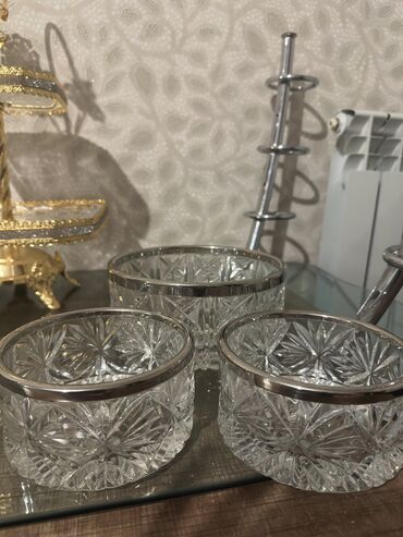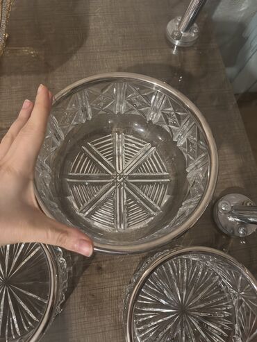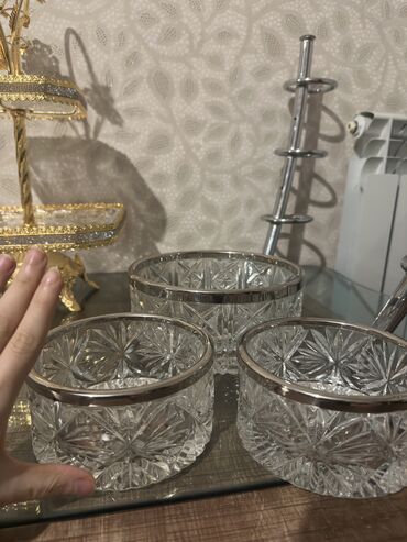 3 ədəd Xrustal qablar.Hər biri-7azn. Ölçüsü:Eni-14sm