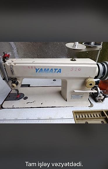 Yamata Juki markalı sənaye tikiş maşını. Bu maşın tikiş işləri üçün uyğun olan sənaye tipli bir modeldir. Maşın möhkəm bir masanın üzərində qurulmuşdur və böyük tikiş layihələri üçün dayanıqlılıq təmin edir. Mühərriki və pedalı ilə tam işlək vəziyyətdədir. Paltar, parça və digər tikiş materialları ilə işləmək üçün ideal vasitədir.