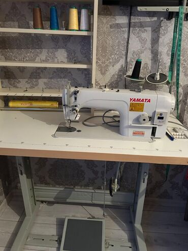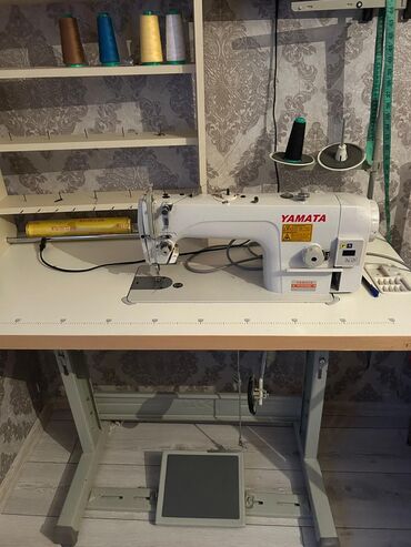 YAMATA sənaye tikiş maşını – düz tikiş (lockstitch) tipli, stol və ayaq pedalı ilə komplekt.